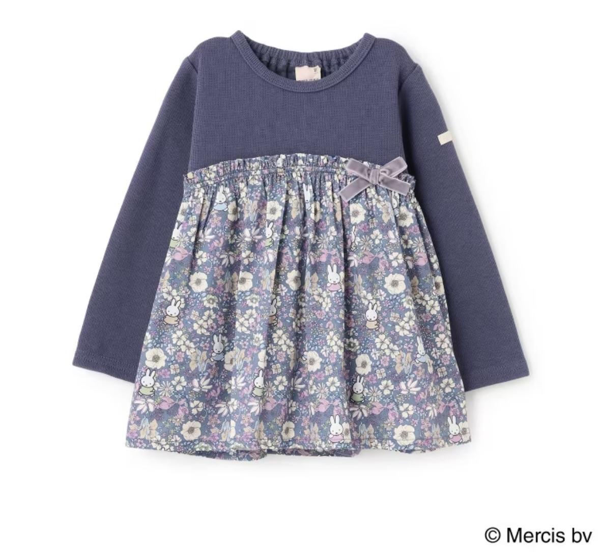 petit main MIFFY 碎花 裙擺 長袖 藍色