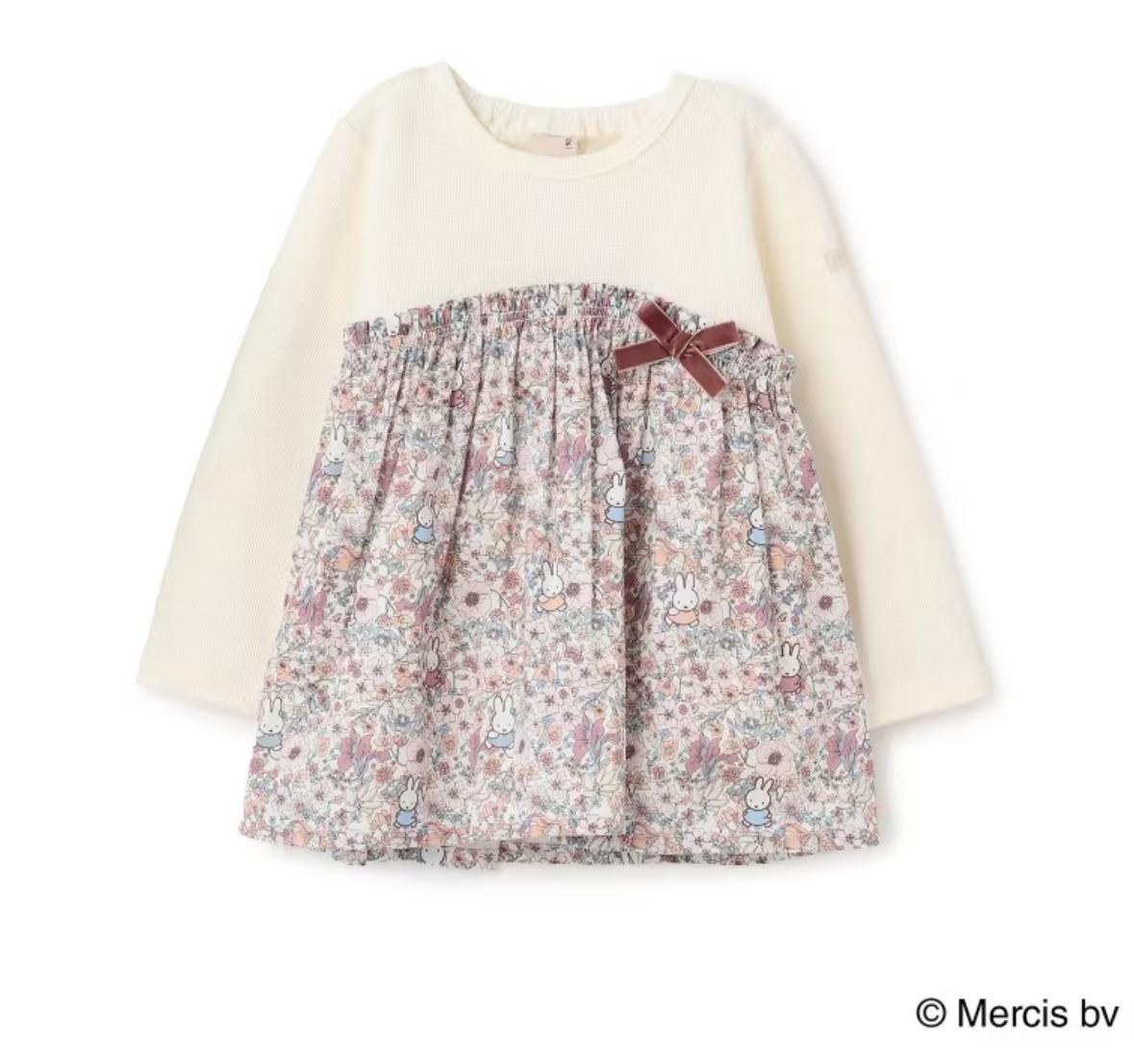 petit main MIFFY 碎花 裙擺 長袖 米色