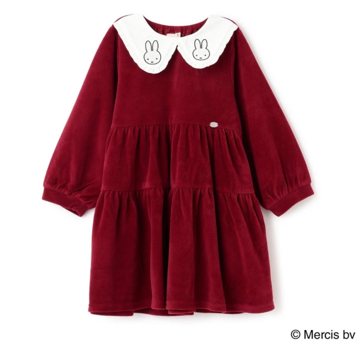 petit main MIFFY 有領絨面 長裙 紅色