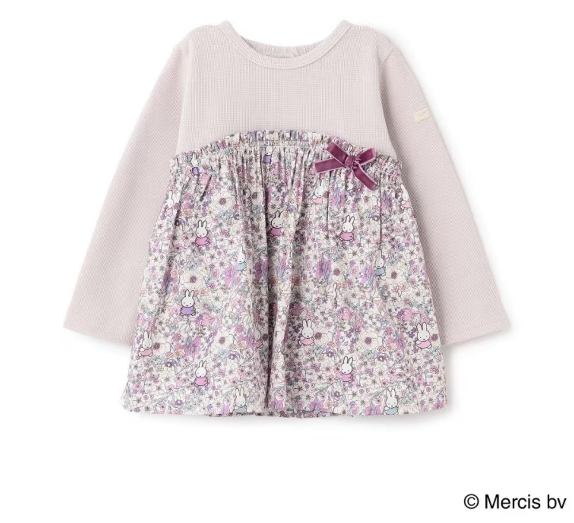 petit main MIFFY 碎花 裙擺 長袖 粉紅色