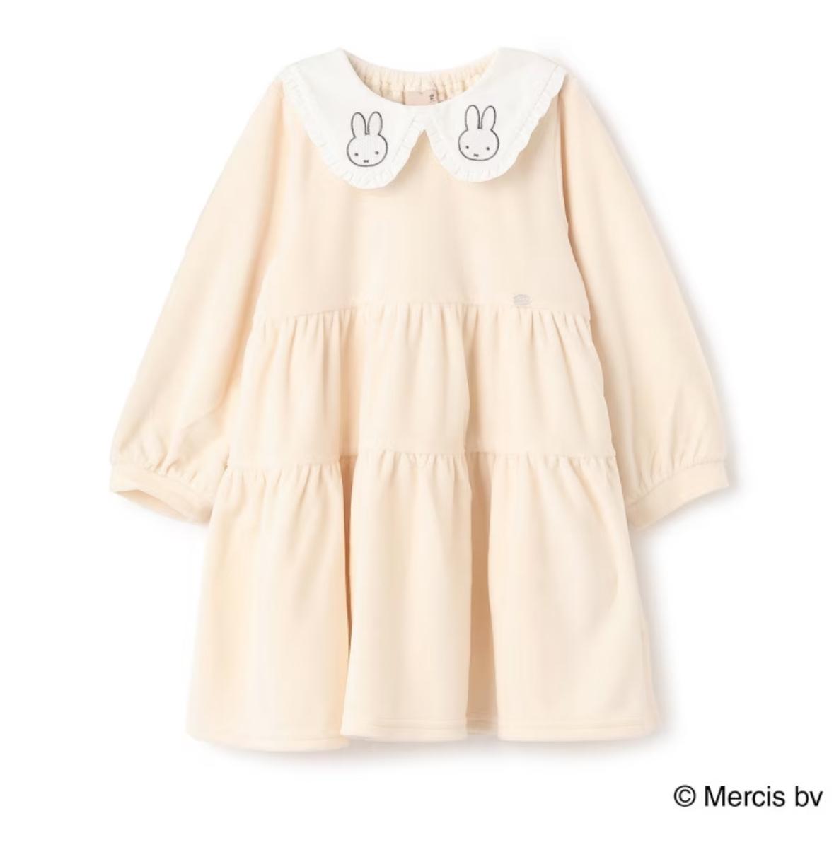 petit main MIFFY 有領絨面 長裙 白色