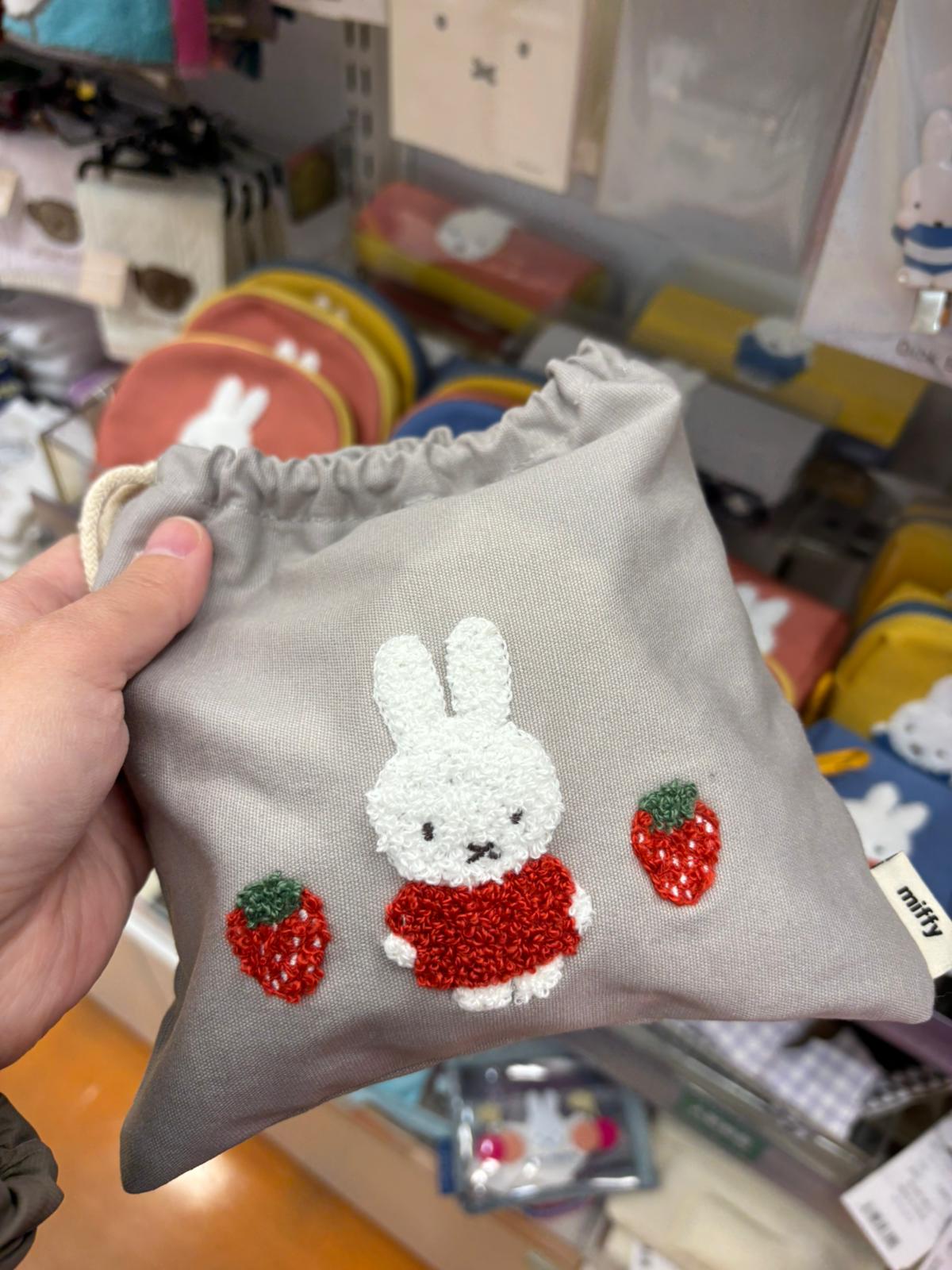 MIFFY 草莓 毛毛刺繡 索繩袋