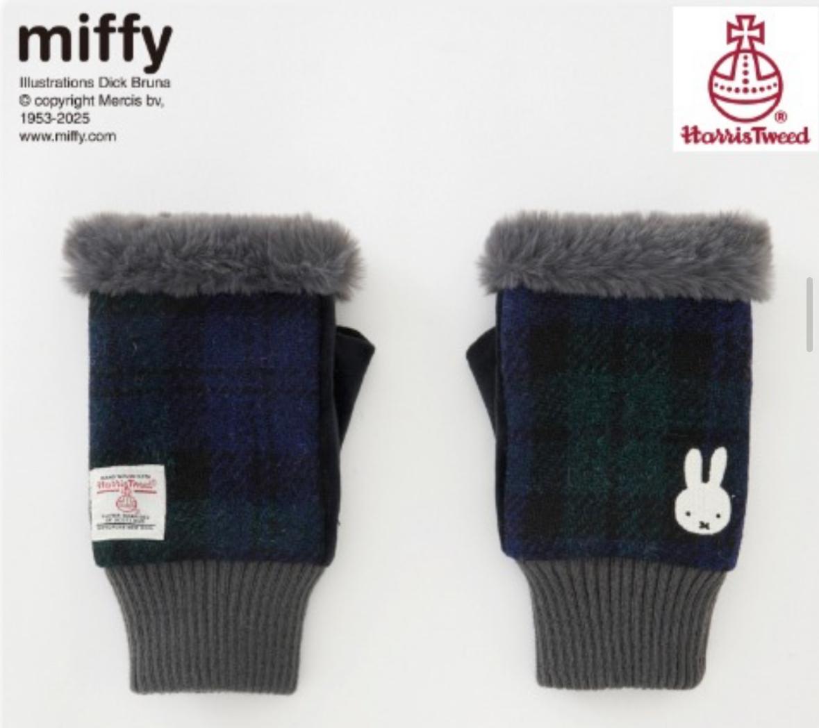 MIFFY Harris Tweed 格紋半指手套 深綠格